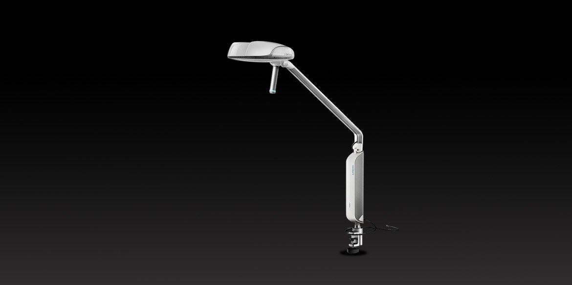 整體采用干凈的乳白色和銀色的搭配,可以大幅度的角度調(diào)整,對工作也又更好的幫助。品牌logo放置燈體下部,大小與機(jī)體完美配合,完美展示。