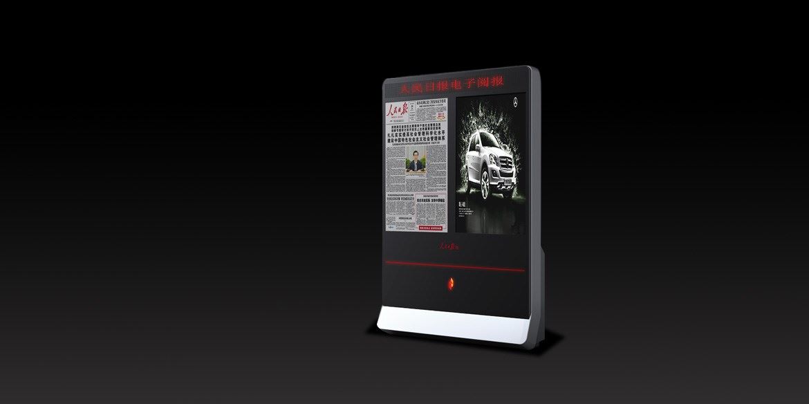 戶外電子閱報欄分成兩種款式,適用于不同的公共場所供人們閱讀。這款產(chǎn)品以黑色為主色調(diào),大方,干凈,簡潔,能夠使報欄的重點(diǎn)部分凸顯。