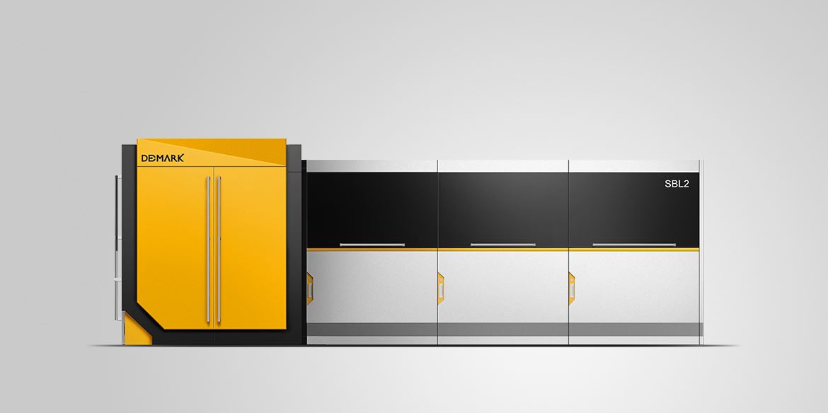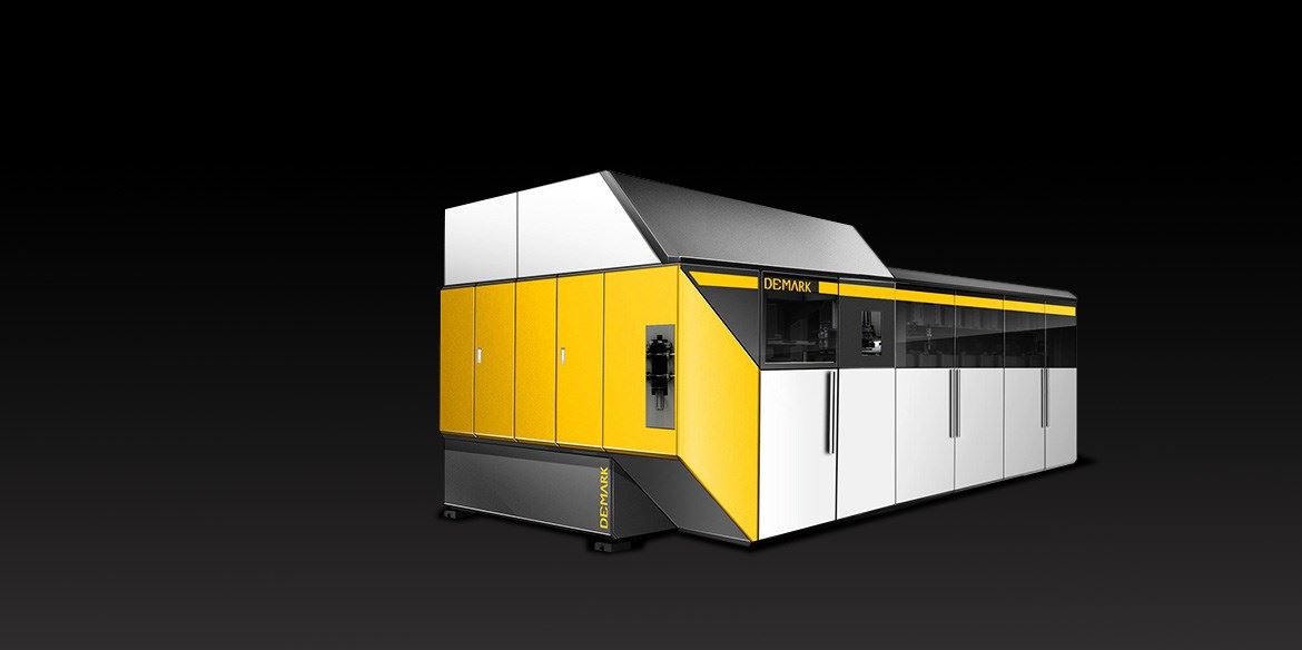 以黑色為底色,凸顯黃色線條中的 DEMARK LOGO