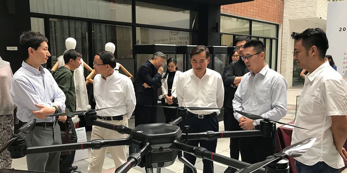 王日華會(huì)長陪同周禹鵬會(huì)長、陳躍華主任、趙效定理事長、李關(guān)德秘書長等領(lǐng)導(dǎo)參觀岸峰團(tuán)隊(duì)設(shè)計(jì)出品的首控黑鳶測繪無人機(jī)