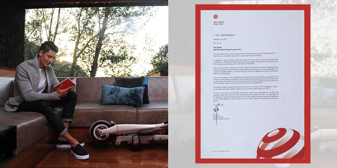 小編最新大大好消息: 由岸峰和一英里共同協(xié)作完成的作品——光環(huán)微電折疊車(chē),終于!!終于?。。?!斬獲德國(guó)紅點(diǎn)至尊獎(jiǎng)啦!!