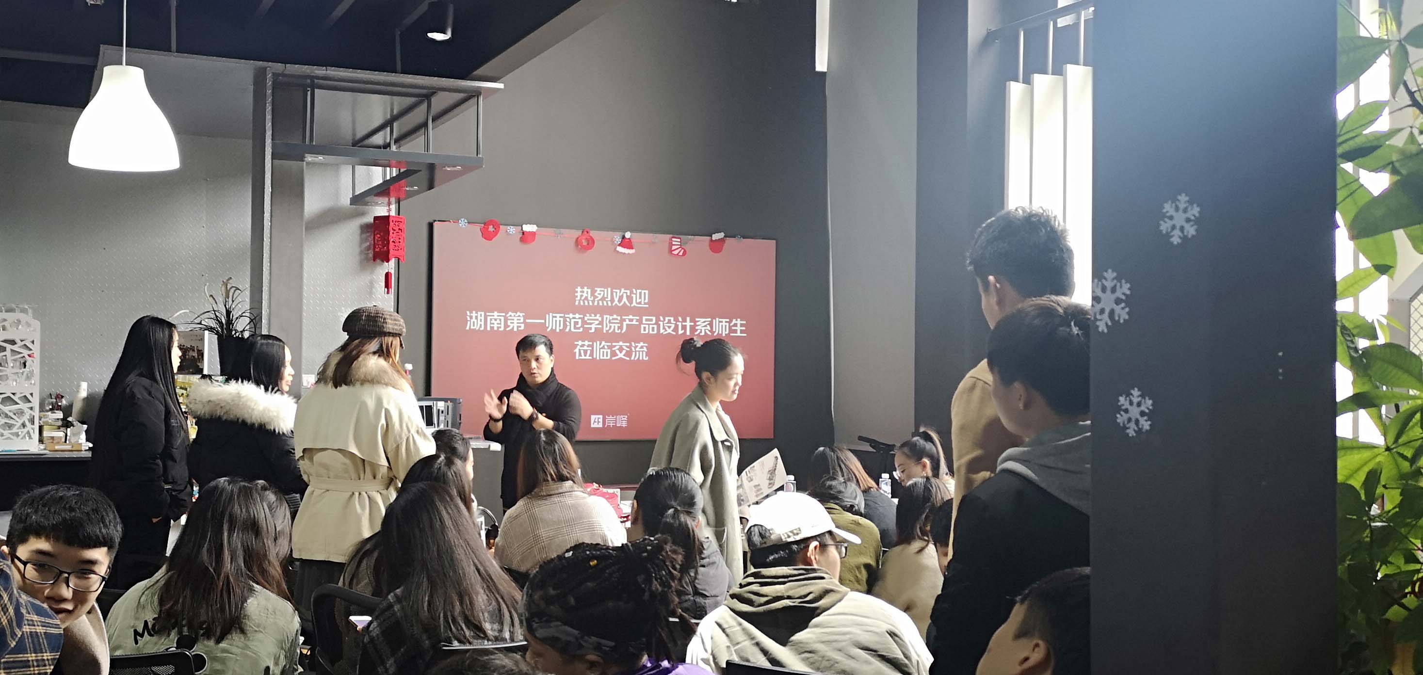 2018年12月27日上午,岸峰迎來了湖南第一師范學院產(chǎn)品設計系的師生,在冬日的暖陽中進行了一場熱鬧的設計交流